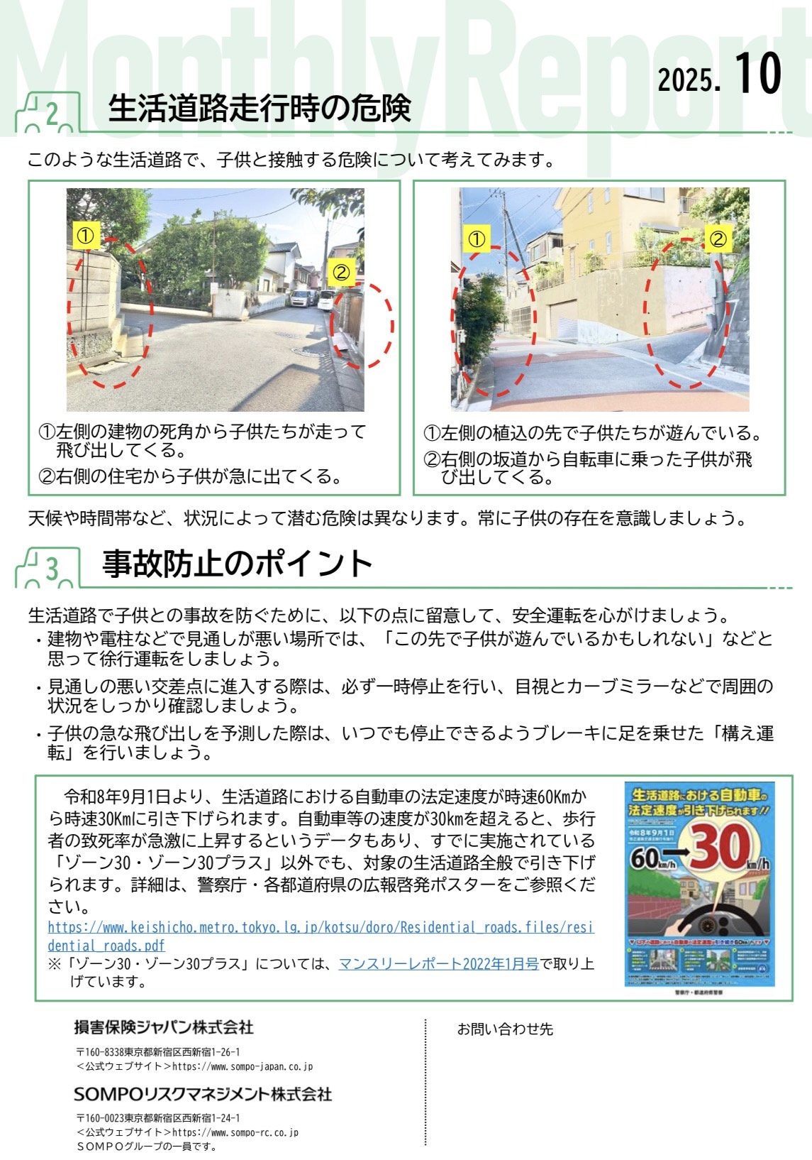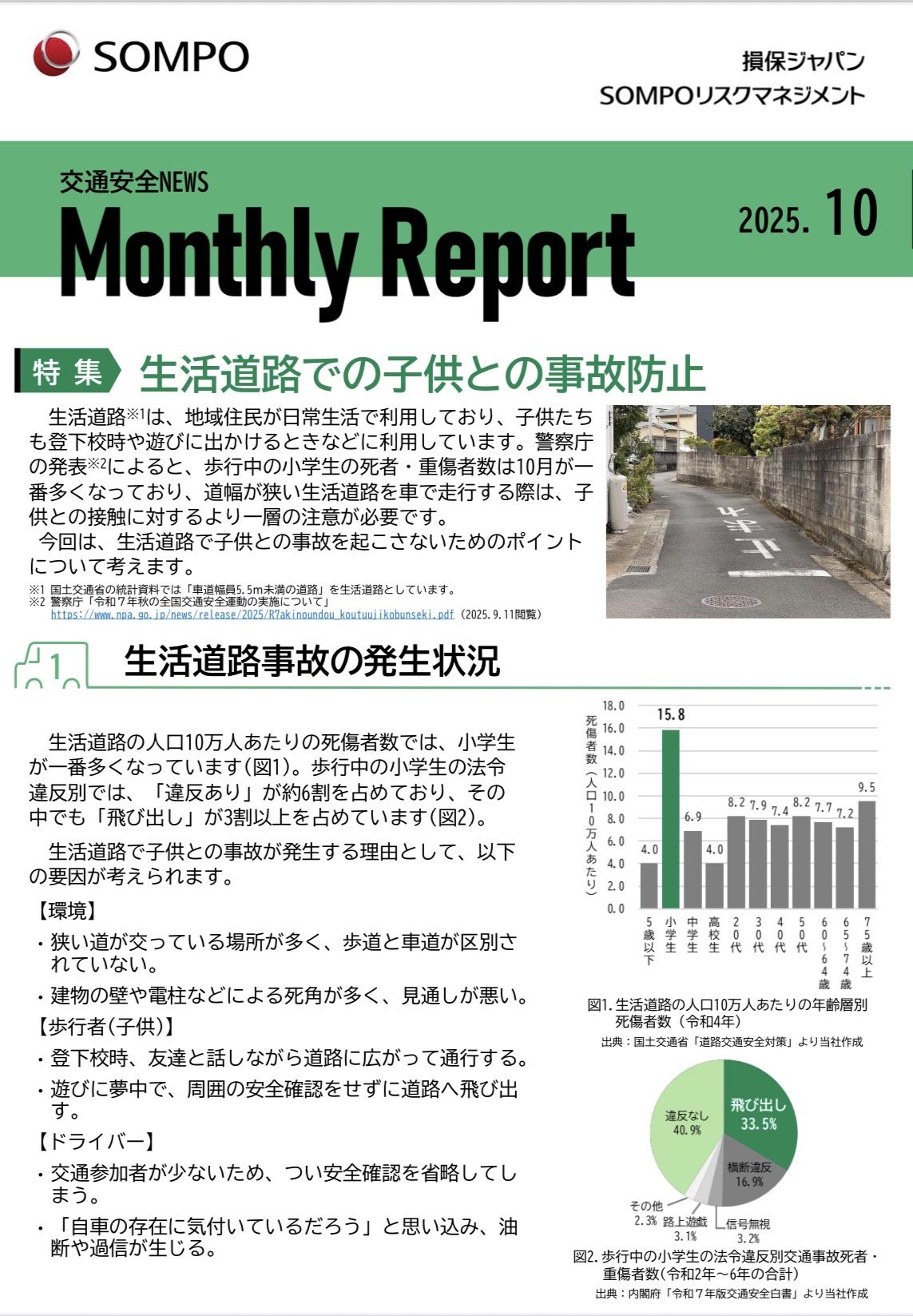 警察庁の発表によると、歩行中の小学生の死者・重傷者数は10月が一番多くなっており、道幅が狭い生活道路を車で走行する際は、子供との接触に対するより一層の注意が必要です。 生活道路で子供との事故を起こさないためのポイントについて、ぜひご一読ください。 ブログ用ダウンロード